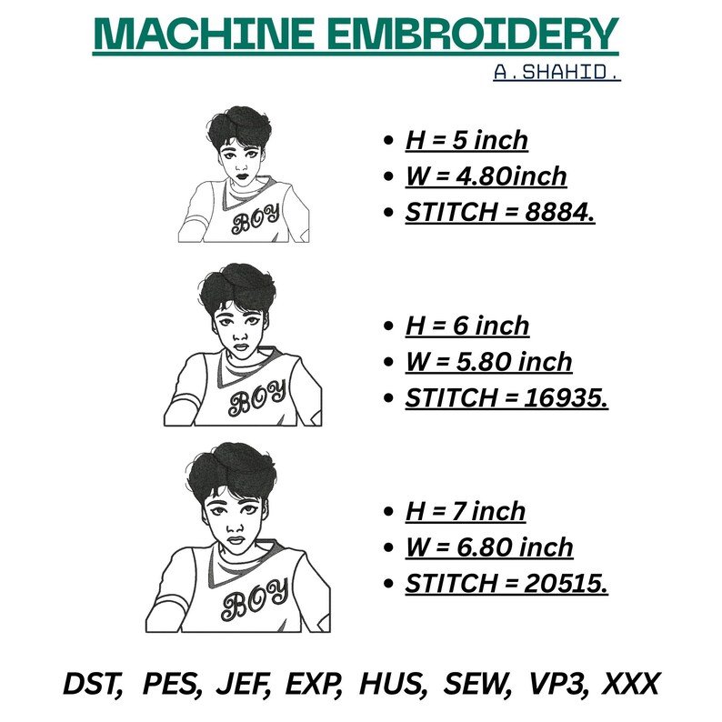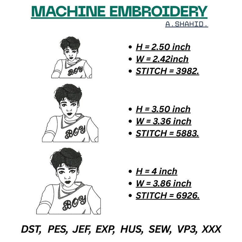 Elevate your streetwear and apparel projects with this Aesthetic Boy portrait embroidery file. This design is meticulously digitized with a focus on clean lines and professional stitch quality, making it perfect for T-shirts, hoodies, tote bags, and denim jackets.