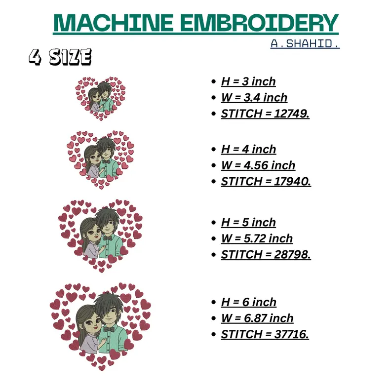 Celebrate love and togetherness with this beautiful Couple Heart embroidery file. Featuring a charming couple framed by a border of delicate hearts, it’s the perfect choice for anniversary gifts, wedding decor, and personalized apparel.